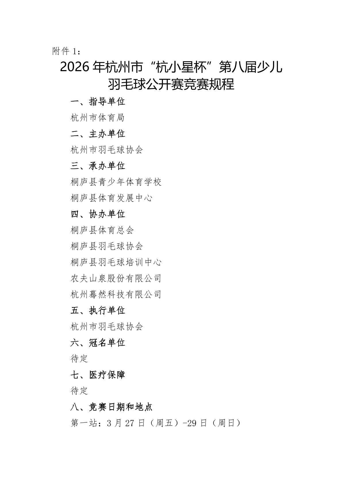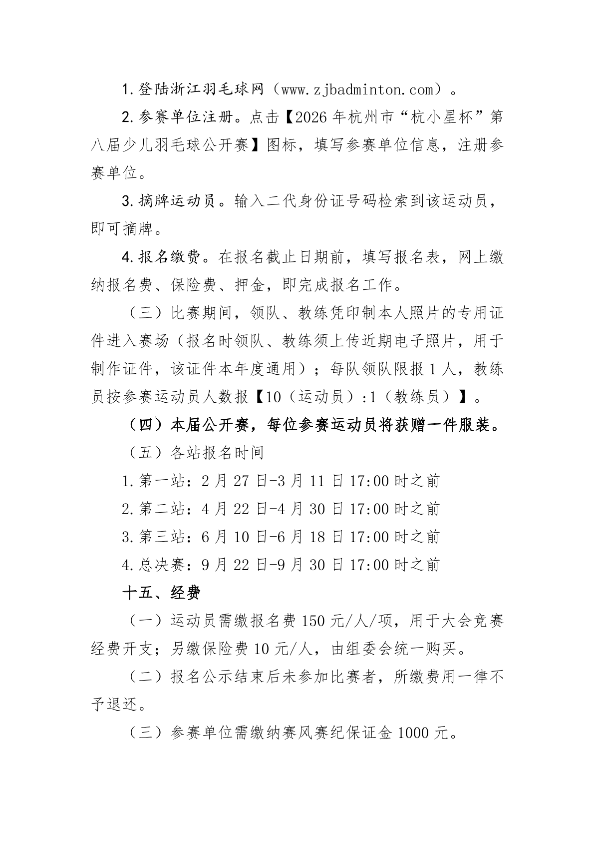 2026年杭州市“杭小星杯”第八届少儿羽毛球公开赛竞赛规程 -