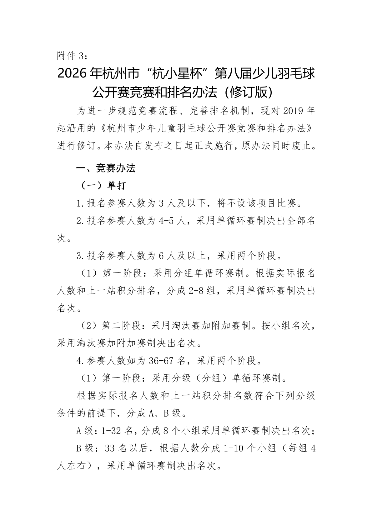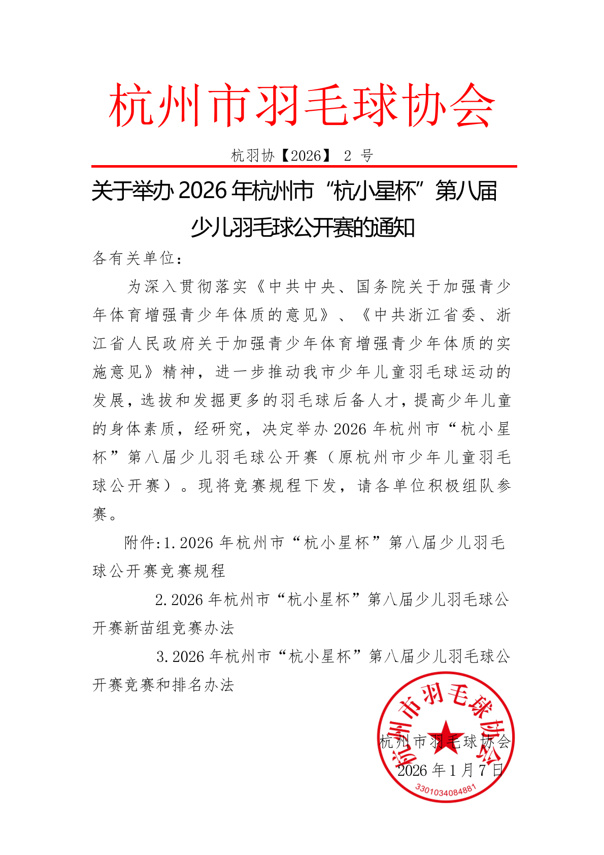 2026年杭州市“杭小星杯”第八届少儿羽毛球公开赛竞赛规程 -